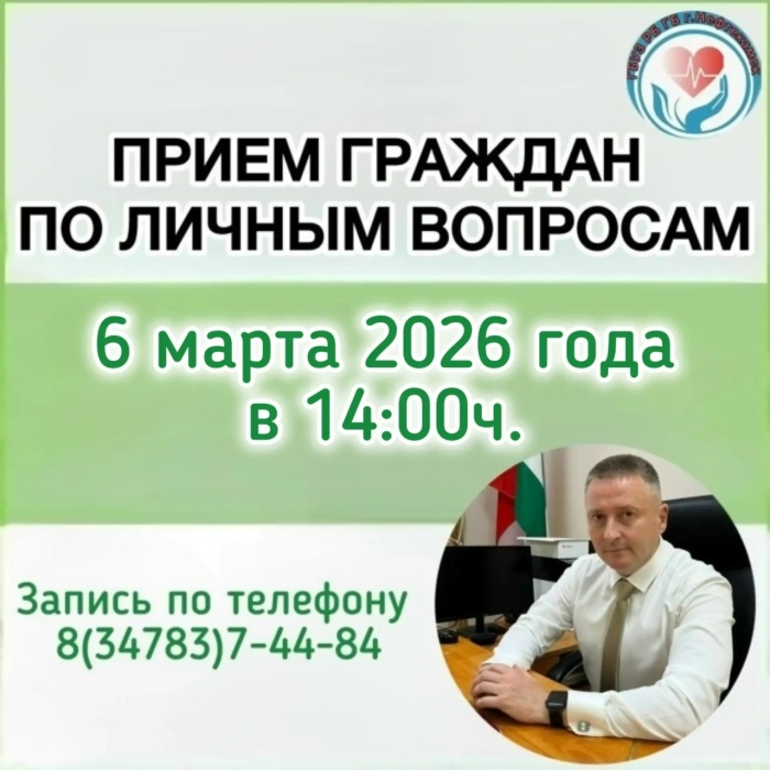 6 марта 2026г. главный врач городской больницы г.Нефтекамск Зиятдинов Р.З. проведет личный прием населения
